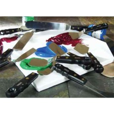 These hand-forged knives have a polished olive wood handle. Great for acrylics because it absolutely will not rust. The size and shape of the blade will result in great differences in spring and control."..